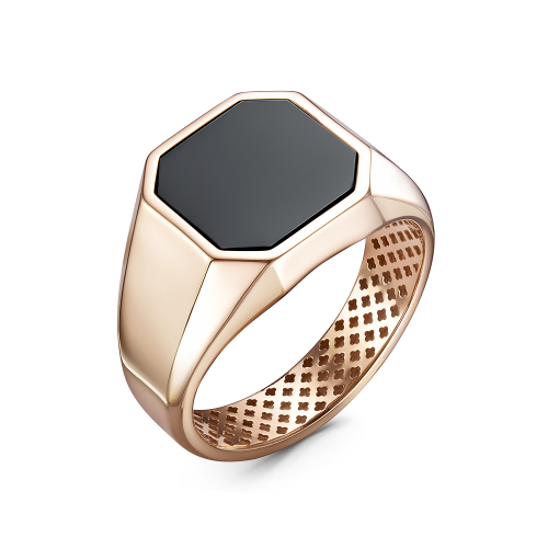Стильное кольцо-печатка, выполненное в сочетании красного золота 585 пробы с черной эмалью