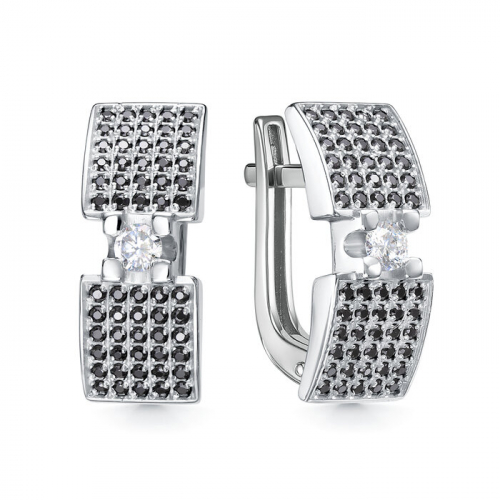 Стильные серьги выполнены из белого золота 585 пробы, украшенные черными сверкающими фианитами