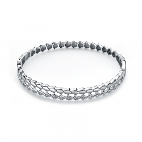 Стильный жесткий серебряный браслет выполнен из качественного серебра 925 пробы и украшен сверкающими фианитами