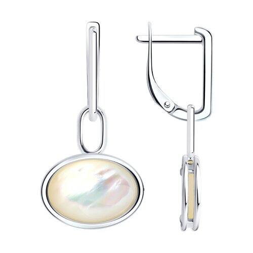 Прекрасное украшение, которое сочетает в себе элегантность и природную красоту. Нежный серебристый металл идеально дополняет переливающийся перламутр, создавая ощущение свежести и легкости. Эти серьги станут отличным выбором для тех, кто ценит тонкий вкус и стремление подчеркнуть свою индивидуальность. Они легко впишутся в любой образ, будь то повседневный стиль или праздничный выход, добавляя женственности и шарма. Представлено брендом SOKOLOV. Вставки: 2 × Перламутр недраг Белый Овал кабошон 14.00*10.00 ~9,244 кар В комплект поставки входит: