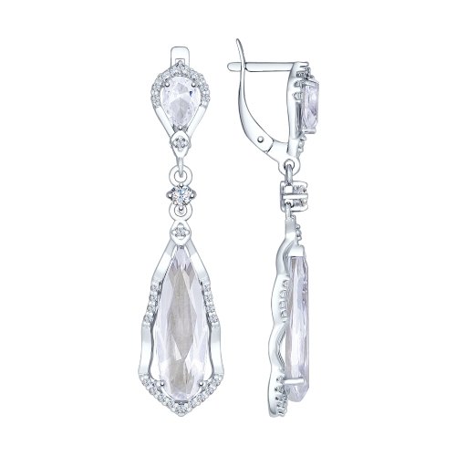 Серьги длинные из серебра с горным хрусталем и фианитами