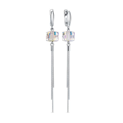 Удлинённые серьги из серебра 925 пробы с фианитами и английским замком