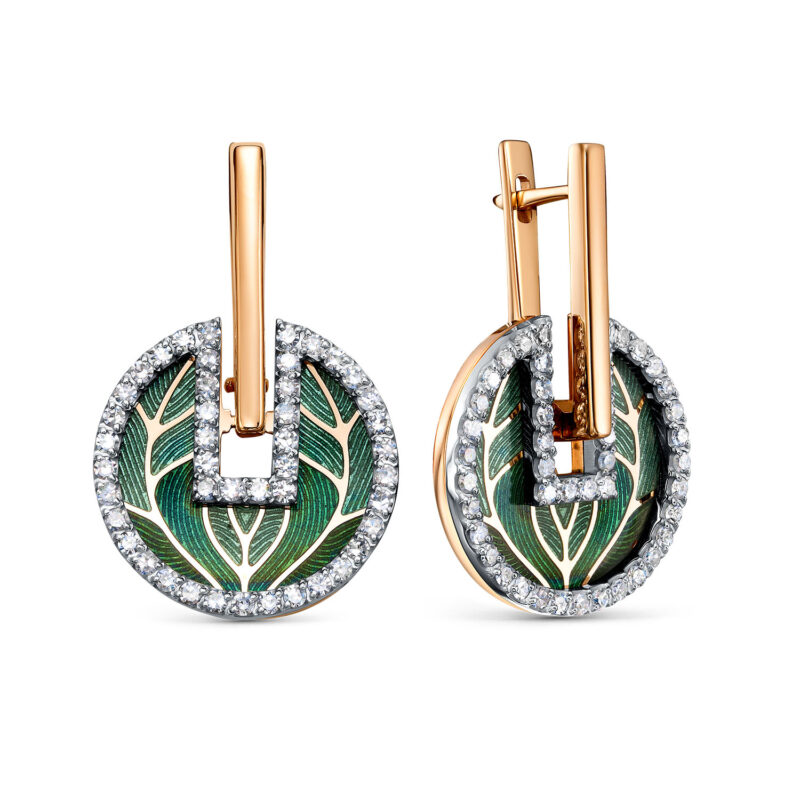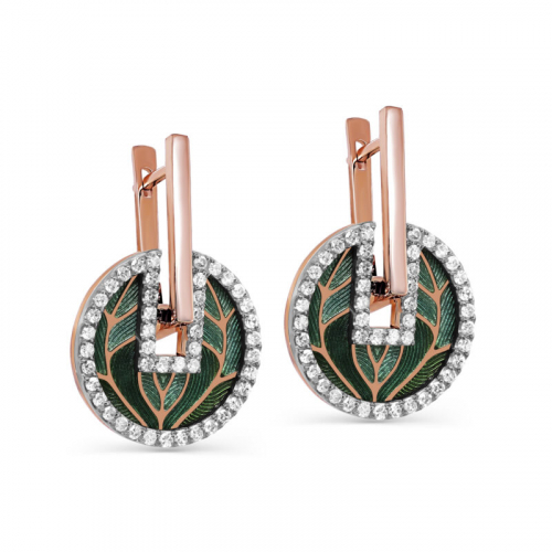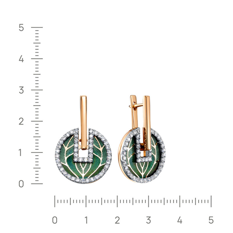 Изысканные серьги от российского бренда Kabarovsky выполнены из благородного красного золота 585 пробы. Утончённый дизайн дополнен сиянием бриллиантов и яркими акцентами холодной эмали, которые придают украшению современный и элегантный вид. Серьги станут стильным дополнением как к вечернему образу, так и к повседневной одежде, подчёркивая индивидуальность и хороший вкус своей обладательницы.Средняя характеристика камней: 90 Бриллиант Круг-17 90-120 2/2А 0.98ct В комплект поставки входит: