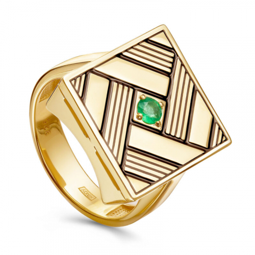 Кольцо из серебра 925 пробы с изумрудом и холодной эмалью от российского бренда Kabarovsky выполнено в виде объёмного квадрата с позолотой
