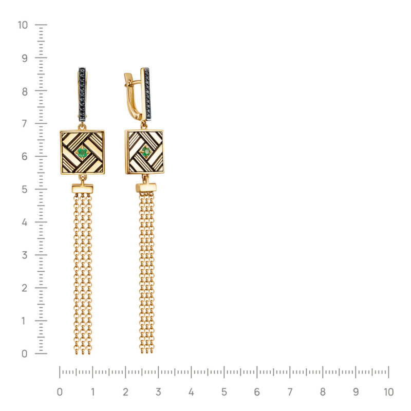 Серьги из серебра 925 пробы с изумрудом, чёрными фианитами и холодной эмалью от российского бренда Kabarovsky — это воплощение современного ювелирного искусства