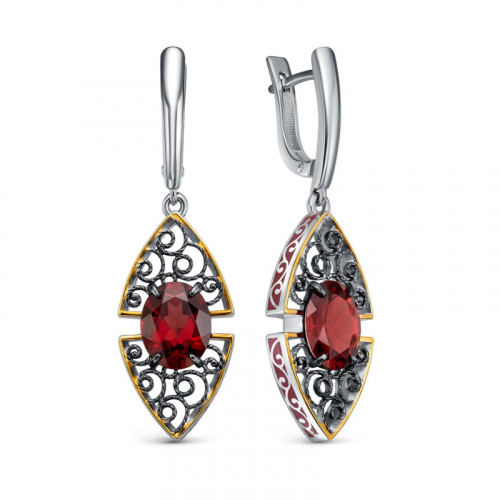 Серьги из серебра 925 пробы с гранатами и холодной эмалью от российского бренда Kabarovsky украшены подвесной частью с расписной финифтью. Это изделие сочетает в себе благородство серебра, насыщенный цвет гранатов и яркость эмалевых красок. Оттенок красочного покрытия может незначительно отличаться от изделия к изделию, что придаёт каждой паре серёг индивидуальность и уникальность. Такие серьги станут выразительным акцентом для любого образа, подчеркнув стиль и вкус своей обладательницы.Средняя характеристика камней: 2 Гранат Овал 10,0х8,0 5.555ct В комплект поставки входит: