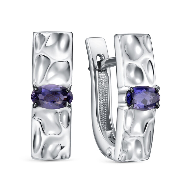 Серьги из серебра 925 пробы с иолитами от российского бренда Kabarovsky выполнены с широкой волновой пластиной в сдержанном стиле
