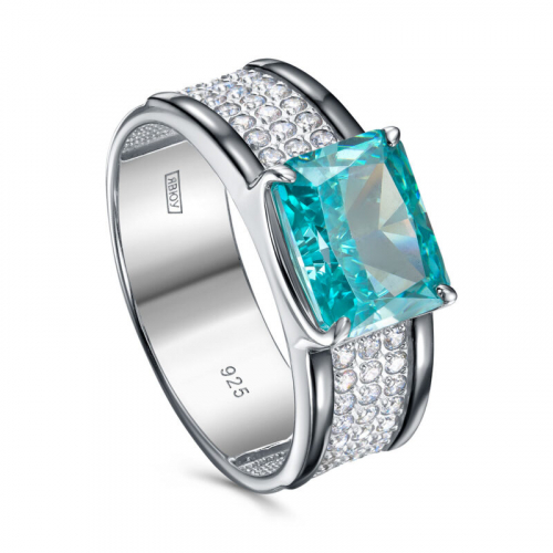 Кольцо из серебра 925 пробы с бриллианитом бирюзового цвета и широкой шинкой, украшенной россыпью фианитов, от российского бренда Kabarovsky — это эффектное и современное украшение. Яркий центральный камень в сочетании с сияющими фианитами создаёт стильный акцент, а широкая шинка добавляет изделию выразительности. Такое кольцо станет прекрасным дополнением как для повседневного, так и для вечернего образа, подчёркивая индивидуальность и вкус своей обладательницы.Средняя характеристика камней: 42 Фианит Круг 1,20|1 Бриллианит Октагон 9,0х7,0 В комплект поставки входит: