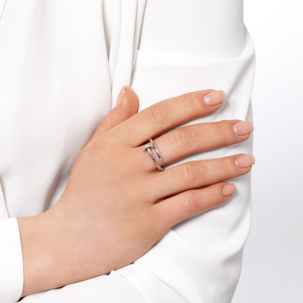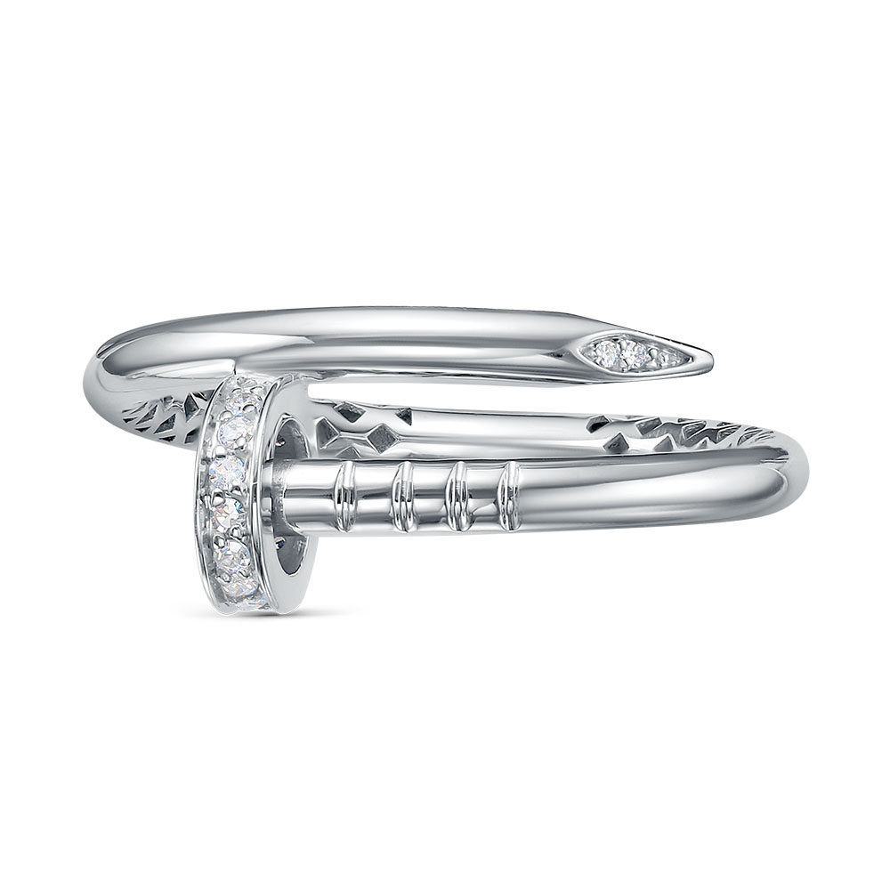 Кольцо в виде гвоздя из белого золота с бриллиантами — это современное и стильное украшение с лаконичным дизайном