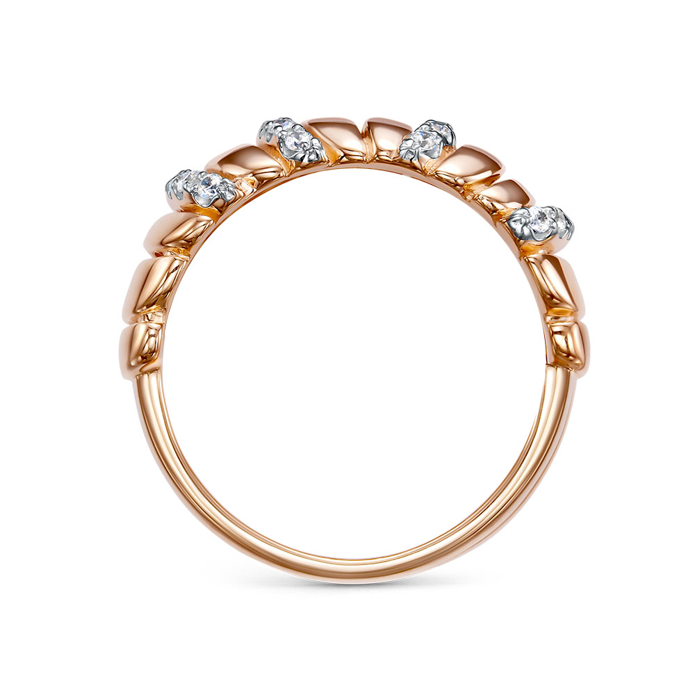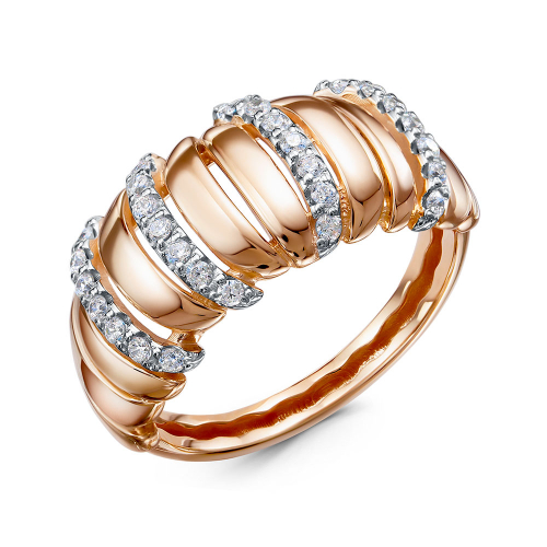 Кольцо из красного золота — воплощение утончённой гармонии. Его поверхность разделена на два ряда: один — гладкий, словно шёлковая лента, а второй — усыпан сверкающими фианитами, которые, как россыпь звёзд, ловят каждый луч света. Такое сочетание создаёт изысканный контраст и придаёт украшению современный и элегантный вид. В комплект поставки входит: