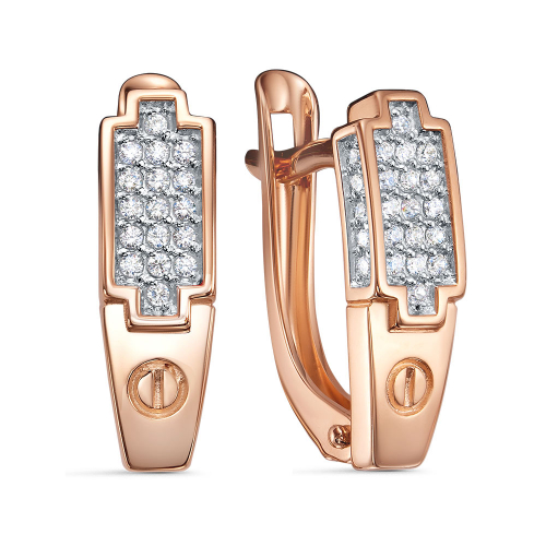 Эти серьги из красного золота — настоящее ювелирное сияние. Их широкая дорожка из фианитов напоминает мерцающую реку, а боковые стороны шинки полностью усыпаны фианитовой россыпью, создавая эффект сплошного потока света.