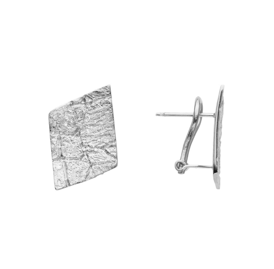 Серьги Piastrella из серебра 925 с покрытием белым родием — стильные украшения с модным геометрическим дизайном. Название серии переводится как «плитка» — поверхность изделий напоминает брусчатку времен римских цезарей. Обработка «алмазная грань» придает ей искристый блеск, как у морозного инея. Ромбовидная форма подчеркивает красоту женского лица, делая его линии более четкими и выразительными. Размер украшений относительно небольшой — 1,5 × 1,8 см, поэтому они смотрятся очень аккуратно. Итальянский замок «омега» не позволит потерять их даже во время занятий спортом и ношения вязаных шапок. Стерлинговое серебро с покрытием — прочный материал, который, к тому же, никогда не темнеет. Представлено брендом STILE ITALIANO. В комплект поставки входит: