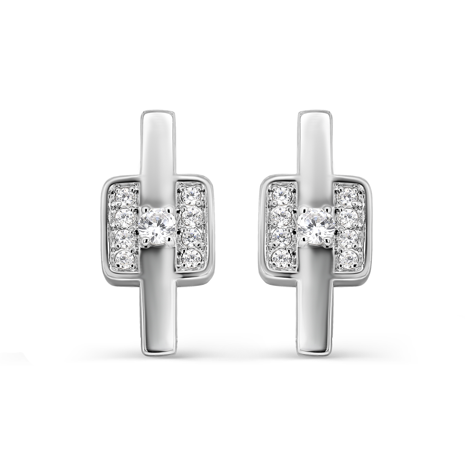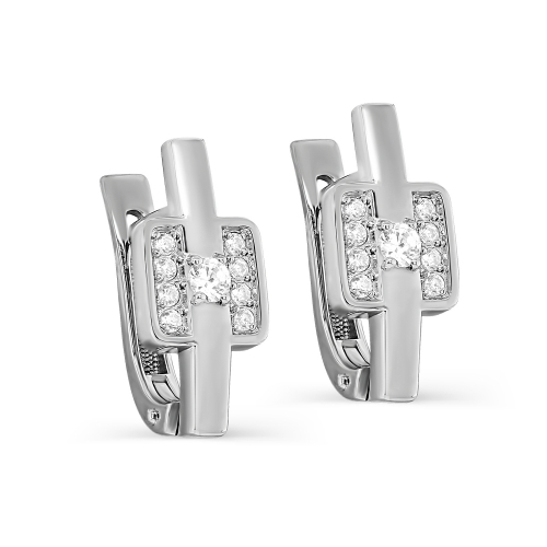 Серьги с фианитами выполнены из родированного серебра 925 пробы