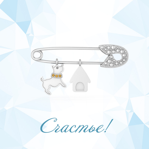 Брошь-амулет из серебра 925 пробы, хранитель семейного счастья. Украшение покрыто металлом платиновой группы - родием, он защищает серебро от потемнения и придает искрящийся яркий блеск.