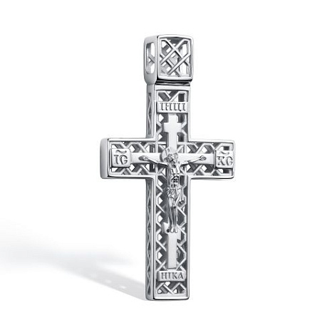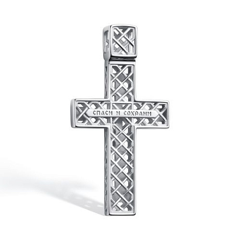 Подвеска в виде нательного креста прямой формы выполнена из серебра 925 пробы