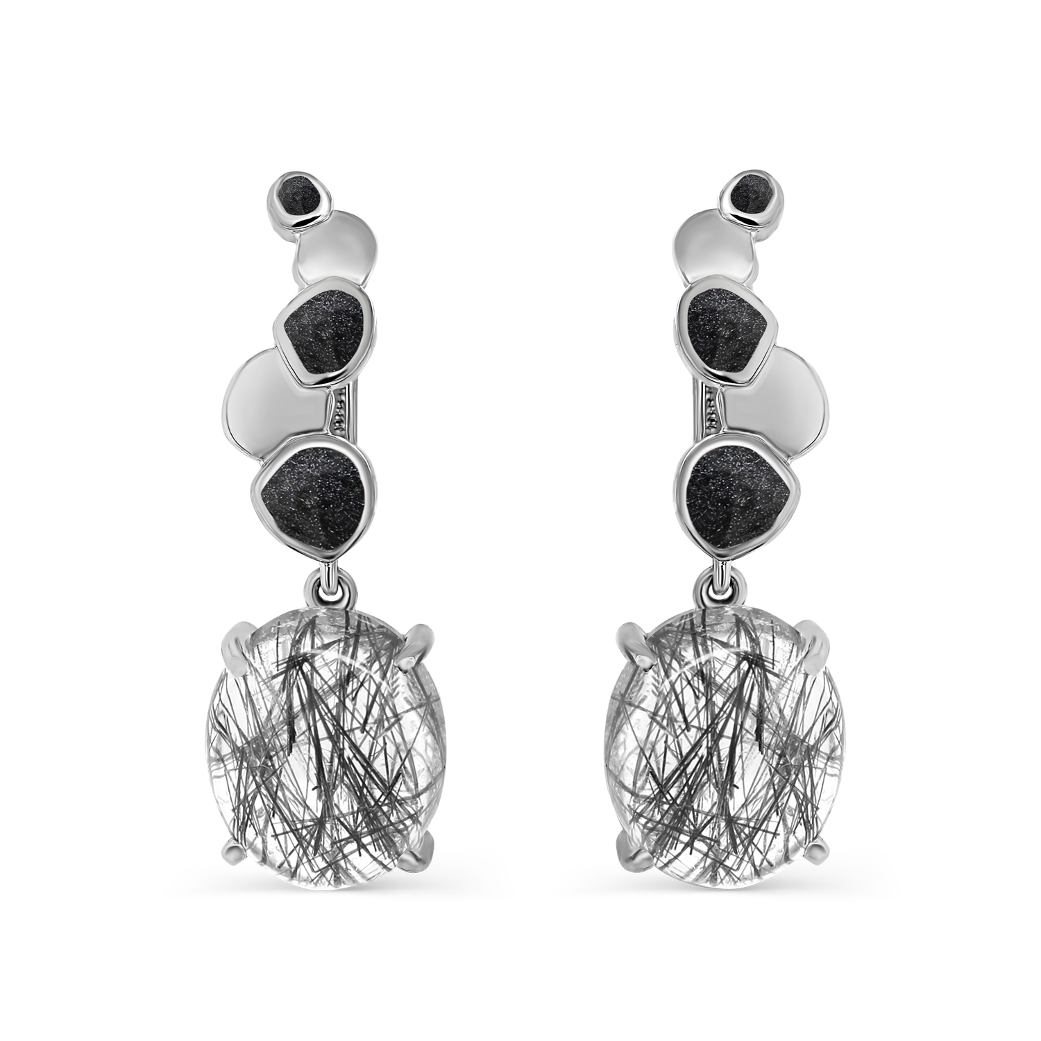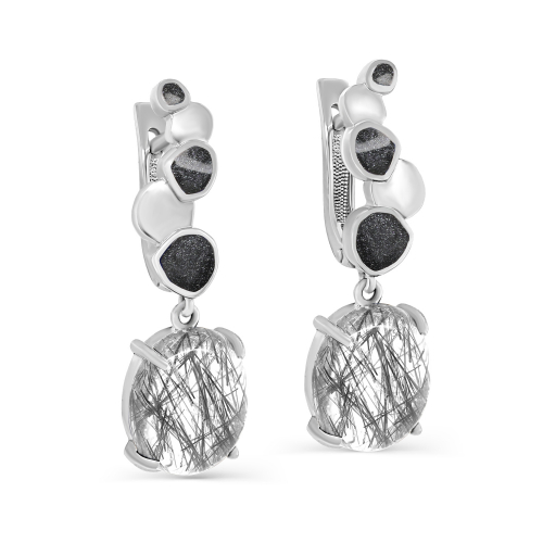 Удлиненные серебряные серьги выполнены из качественного серебра 925 пробы и украшены натуральным кварцем