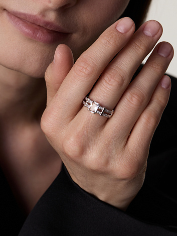 Элегантное кольцо из серебра 925 пробы с горным хрусталём и фианитами