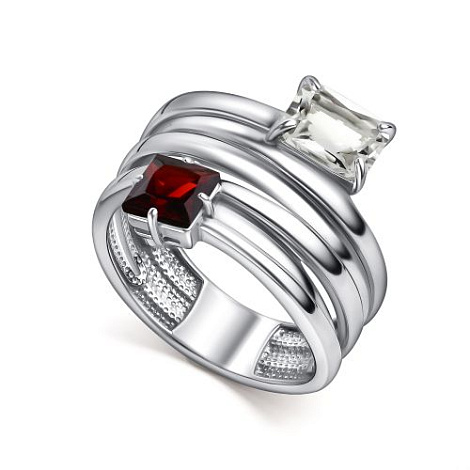 Элегантное кольцо из серебра 925 пробы с гранатом и горным хрусталём