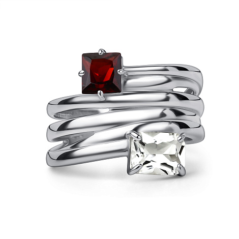 Элегантное кольцо из серебра 925 пробы с гранатом и горным хрусталём. Насыщенный красный цвет граната в сочетании с прозрачностью хрусталя создаёт выразительный и стильный образ. Представлено брендом АЛЬКОР. Средняя характеристика камней: 1 Гранат Бордовый Квадрат 0,831, 1 Горный хрусталь Белый Октагон 0,793 В комплект поставки входит: