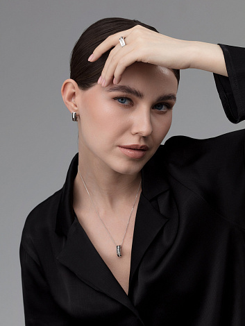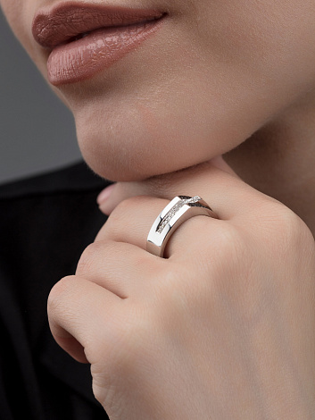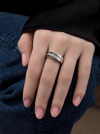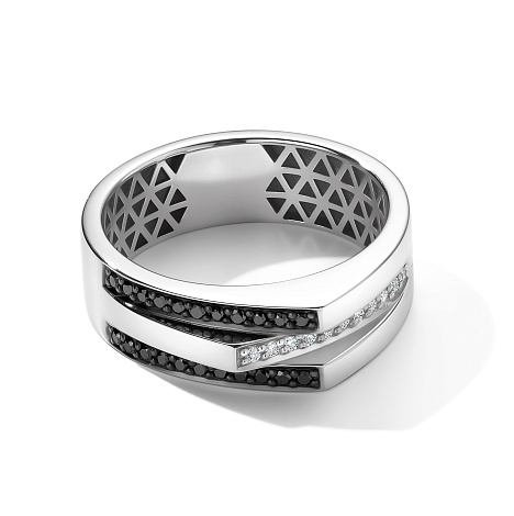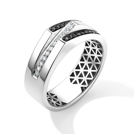 Элегантное кольцо из белого золота 585 пробы с белыми и чёрными бриллиантами